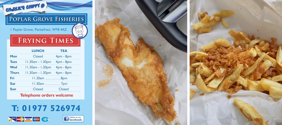 I don't normally write reviews unless I have something to complain about but this place deserves a 5 star review. My daughter and I was on the way to Pontefract park and I decided to try Poplars for some chips to keep us going until dinner time. Whilst waiting for the chips to cook I had a good look around and was impressed with how clean the place was. What was equally impressive was the information provided on the wall showing where/who the fish and potatoes are from which I thought was a nice touch. Now on to the food......what can I say. Absolutely banging! The only thing I'm dissapointed about is that my daughter and I shared a kids fish strip meal. If I had known the food was going to taste sooooo good, I definitely would have gone for a standard fish and chips meal instead of cooking dinner later. Oh....and not forgetting the ladies behind the counter who were an absolute delight. We will definitely be bypassing all the other F&C shops on the way from Castleford to see you soon!